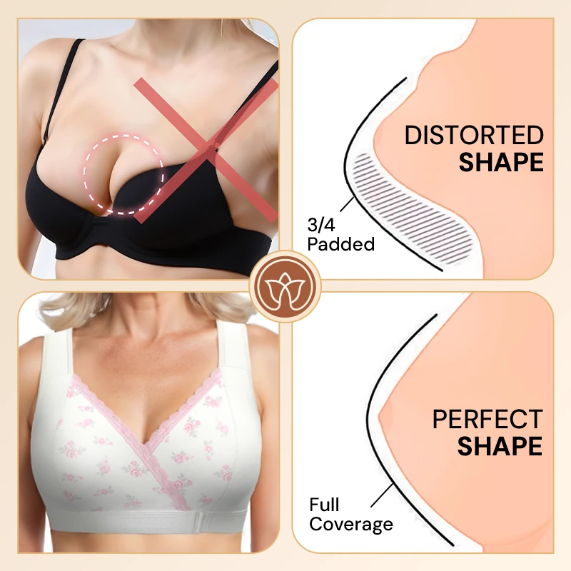 Designed with seniors in mind, the Fiona Bra features an innovative front-wrap closure, making it incredibly easy to put on and take off in less than 5 seconds. Say goodbye to struggling with back hooks or straining muscles on tiny buttons; its unique wrap-it-up system gently supports and shapes for a fuller bust with minimal effort.